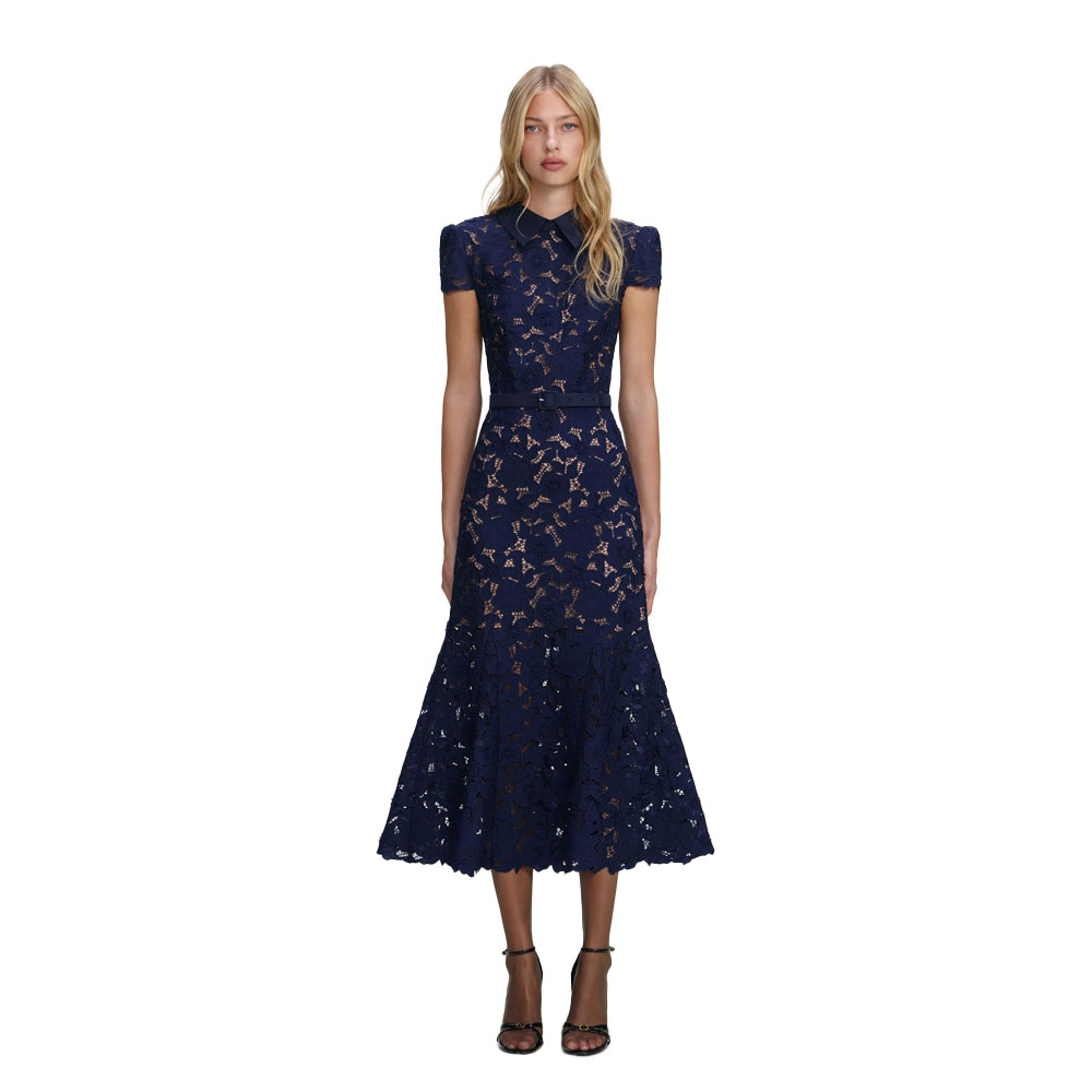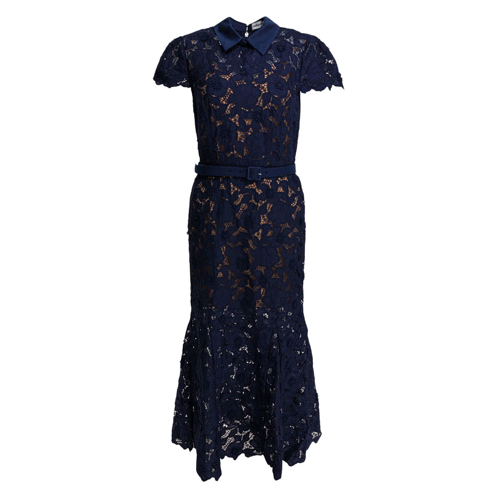 Self-Portrait – Pink Rhinestone Lace Midi Dress